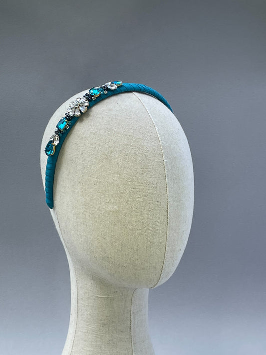 Teal herringbone jewelled slim headband