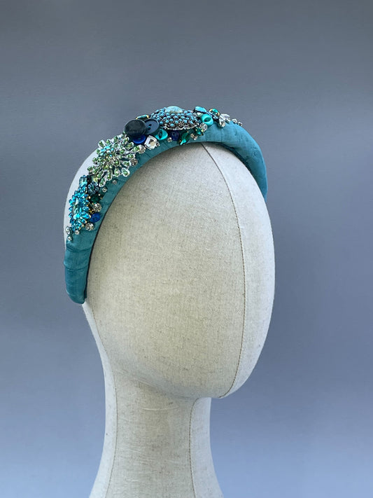 Teal highly embellished statement large padded headband