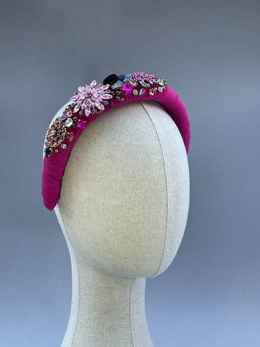 Fuchsia pink highly embellished large padded statement headband