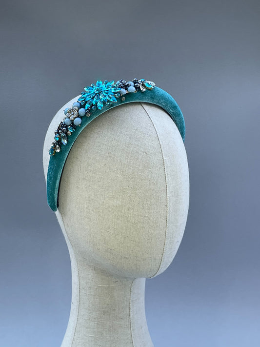Pale pink, pale blue and cobalt blue mix slim headband duo